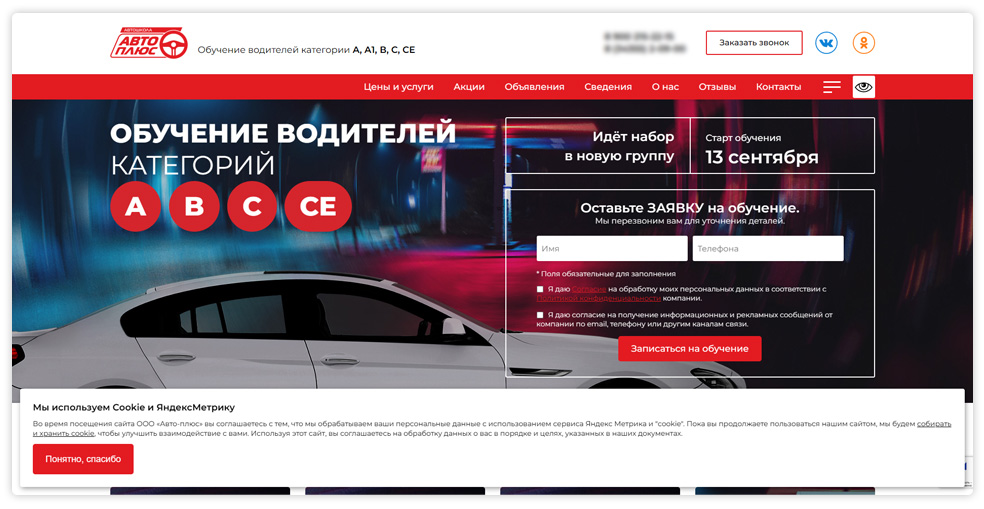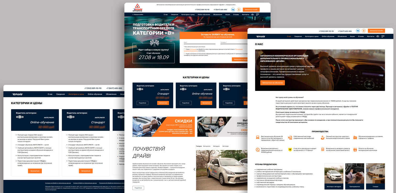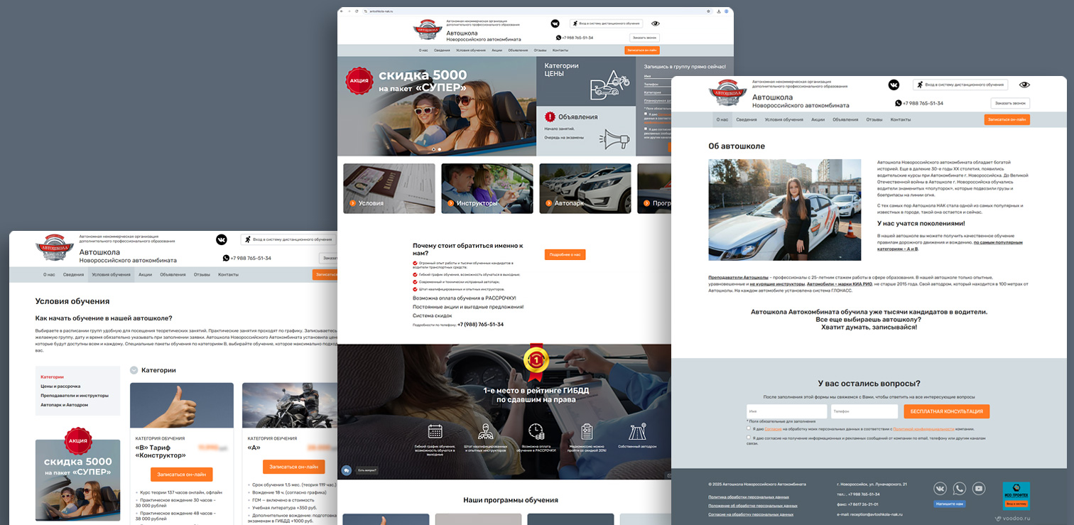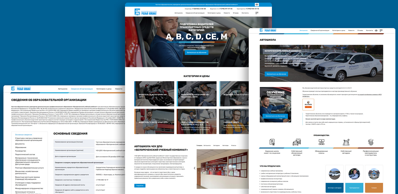 Предлагаем вам сайт, выполненный в соответствии с требованиями Министерства образования, для автошкол, учебных комбинатов и учебных центров различной направленности (автошколы, обучение рабочим специальностям, различные курсы, повышение квалификации и пр.).