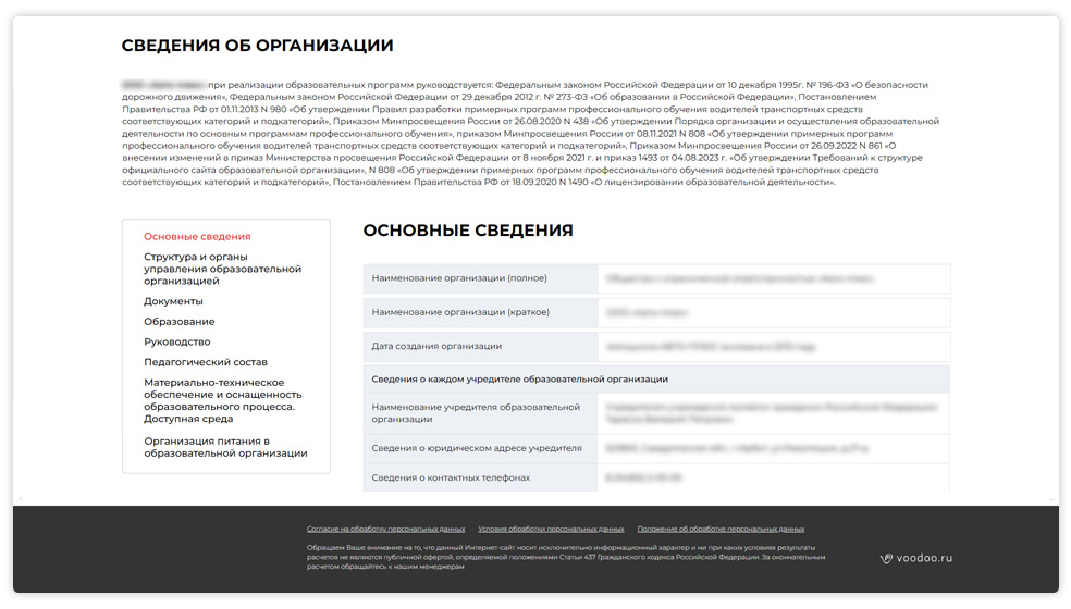Сайт соответствующий всем требованиям по ФЗ152 с версией для слабовидящих и специальной настройкой раздела «Сведения об организации» (настройка по